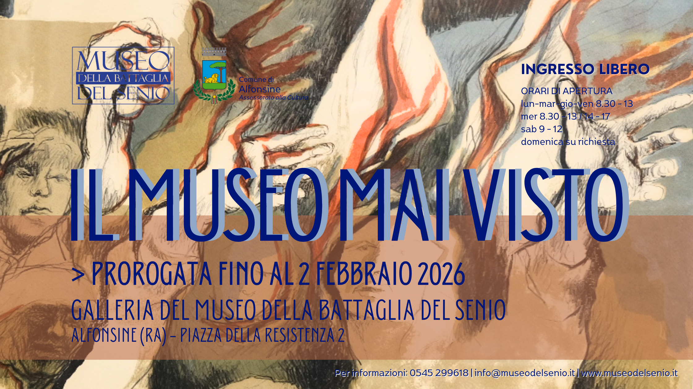 Prorogata fino a lunedì 2 febbraio l’esposizione “Il Museo mai visto”, dedicata alle donazioni più recenti ricevute dal Museo della Battaglia del Senio. Nel tempo il museo continua ad accrescere le proprie collezioni grazie al generoso contributo di cittadini, famiglie … Approfondisci